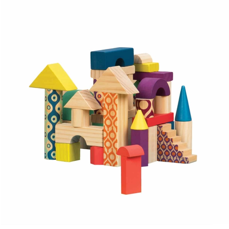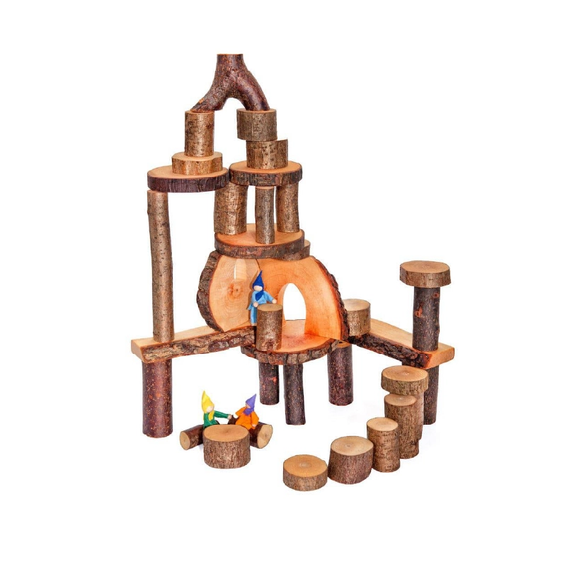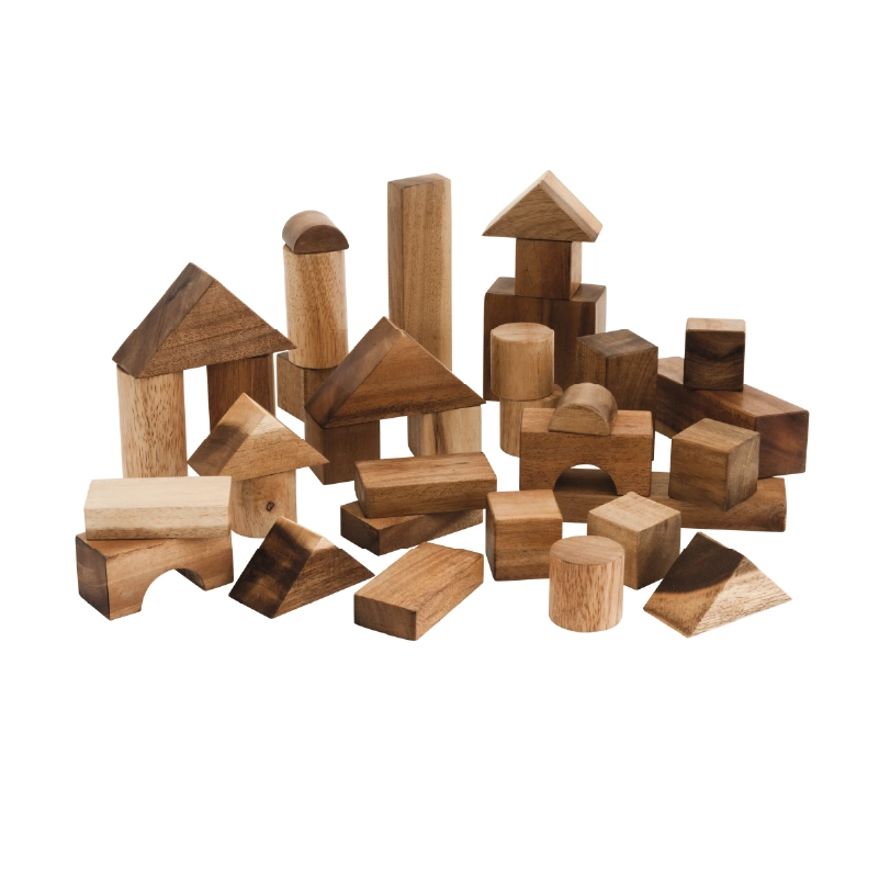 Wood Natural, durable, and tactile. Ideal for open-ended building and sensory engagement.