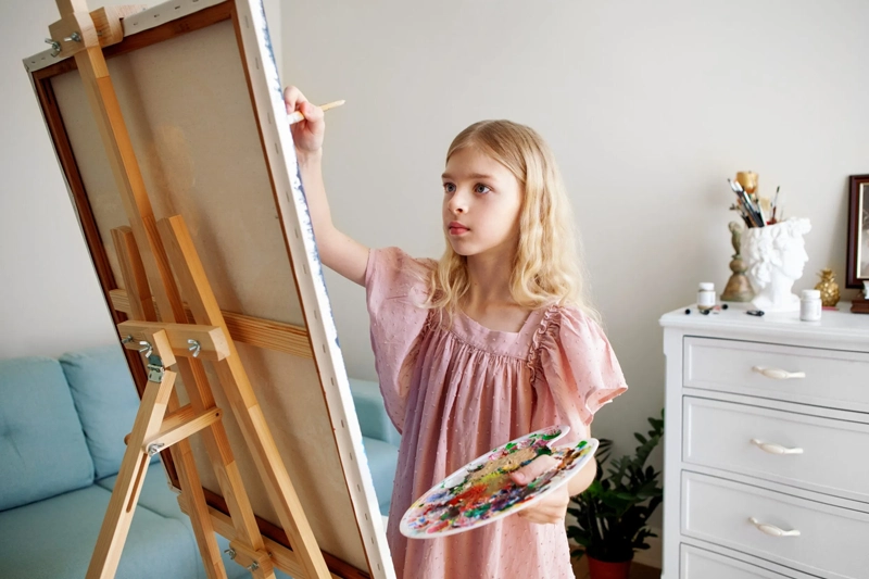 Art provides a powerful entry point into this process. When children engage in creative activities like painting or drawing on an easel, they are not just making pictures. They are telling stories, exploring emotions, and organizing their thoughts. These acts of visual storytelling activate the same cognitive processes used in verbal comprehension such as sequencing, inference, detail recognition, and narrative structure.