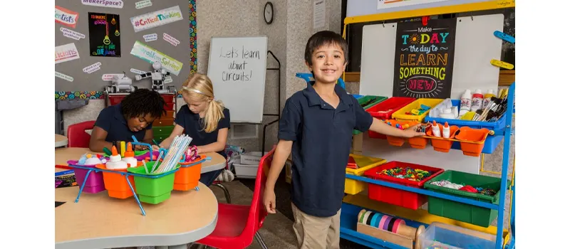 In a small classroom, a makerspace can be set up in a corner, along a wall, or using a mobile cart. The key is to keep the setup simple, define clear boundaries, and organize materials so children can access and return them easily without disrupting the rest of the classroom.