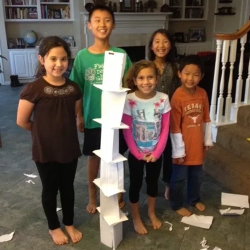 Children work in small teams to build the tallest tower possible using simple materials like cups, sticks, or blocks. The activity focuses on shared planning, communication, and creative problem-solving. Teams must negotiate how to balance height and stability. This collaborative STEAM activity for kids reinforces engineering skills while promoting turn-taking and teamwork.