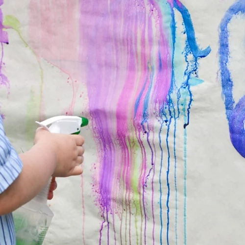 Children place drops of paint on paper and spray them gently with water bottles to simulate raindrops. This spring-themed activity helps children observe how water spreads color and can be tied into a discussion on rain, weather, and the water cycle. It’s one of the more sensory-friendly steam activities for preschoolers that also supports early color theory and process art.