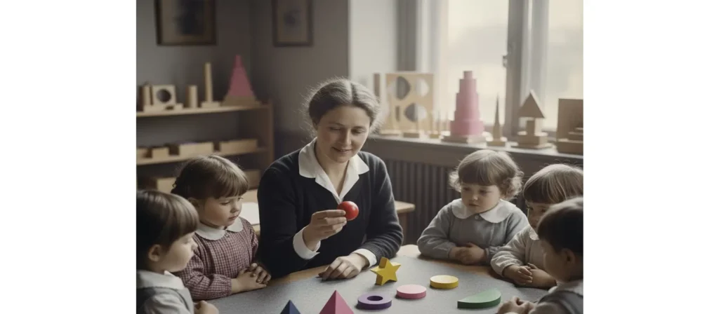 Montessori grammar symbols were created because Maria Montessori observed that children learn best when they can move, handle real objects, and move from concrete experiences to abstract understanding. Traditional grammar teaching often jumps straight to the abstract: definitions, rules, and exercises on paper. Montessori noticed that this approach did not match how young children’s minds naturally work.