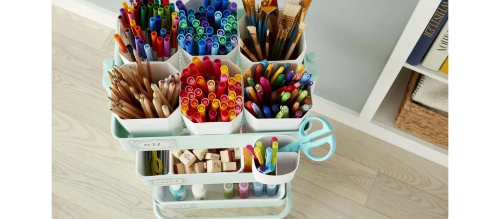 Rolling carts offer one of the most practical storage ideas for a small classroom. They are perfect for storing art supplies, manipulatives, books, or tech tools. You can roll them out during activities and easily tuck them away afterward to keep your space open and clutter-free. Many carts come with bins or drawers, making it easier to sort items by type or subject.