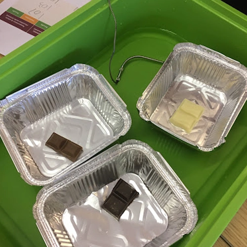 Place chocolate pieces under different heat sources: sunlight, warm water, or in your hands. Ask kids which melts faster and why. A simple way to learn about heat transfer, states of matter, and temperature—without any complicated setup.