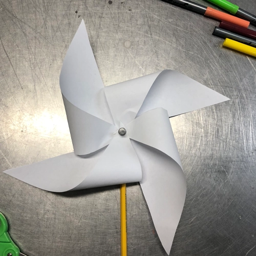 Take your pinwheel outside and test how different wind sources affect its spinning. Try holding it higher, lower, or at different angles. Let kids record their observations. This introduces wind energy and basic aerodynamics in a fun, highly visual way.