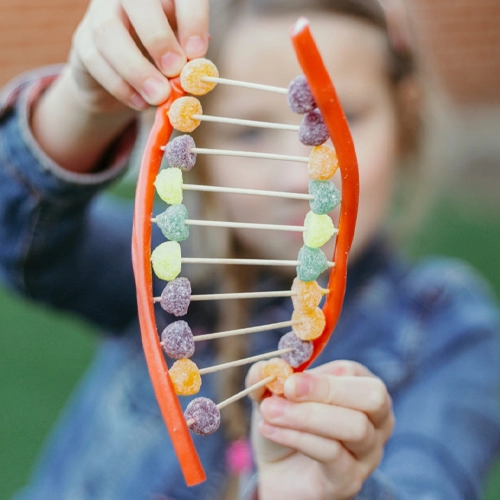 Kids construct a double helix DNA model using candy! Licorice sticks act as the sides of the ladder, and toothpicks connect marshmallows representing the base pairs (A–T, C–G). It’s a deliciously hands-on way to introduce basic genetics, molecular structure, and pattern matching.