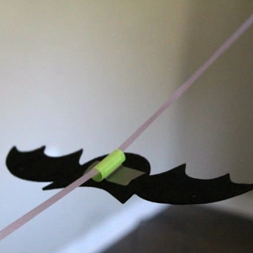 Materials: balloon, string, straw, tape, two chairs