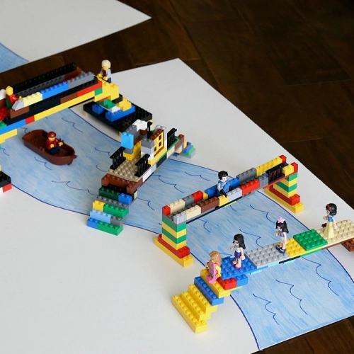 Challenge kids to build a LEGO bridge between two books and see how much weight it can hold before collapsing. Encourage them to test different shapes (arches, beams) and rebuild stronger each time. This classic activity teaches about structure, balance, and load distribution.
