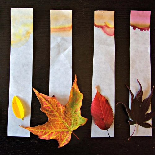 Materials: fresh leaves, white paper, crayons or paint, magnifying glass