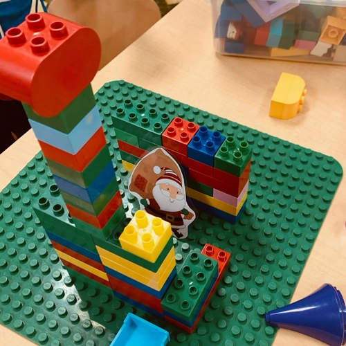 Materials: LEGO baseplate, bricks, marble