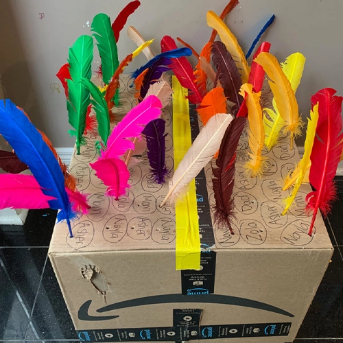 Materials: cardboard box, construction paper, pipe cleaners, foil, glue, markers