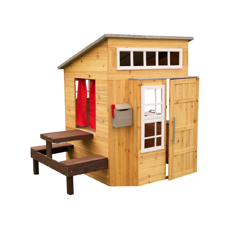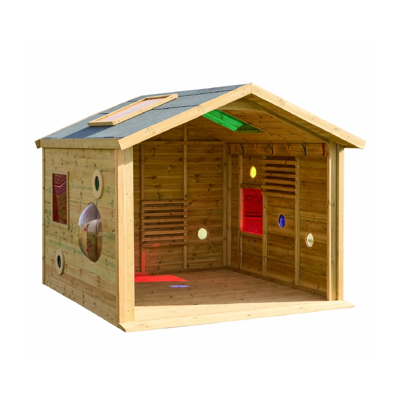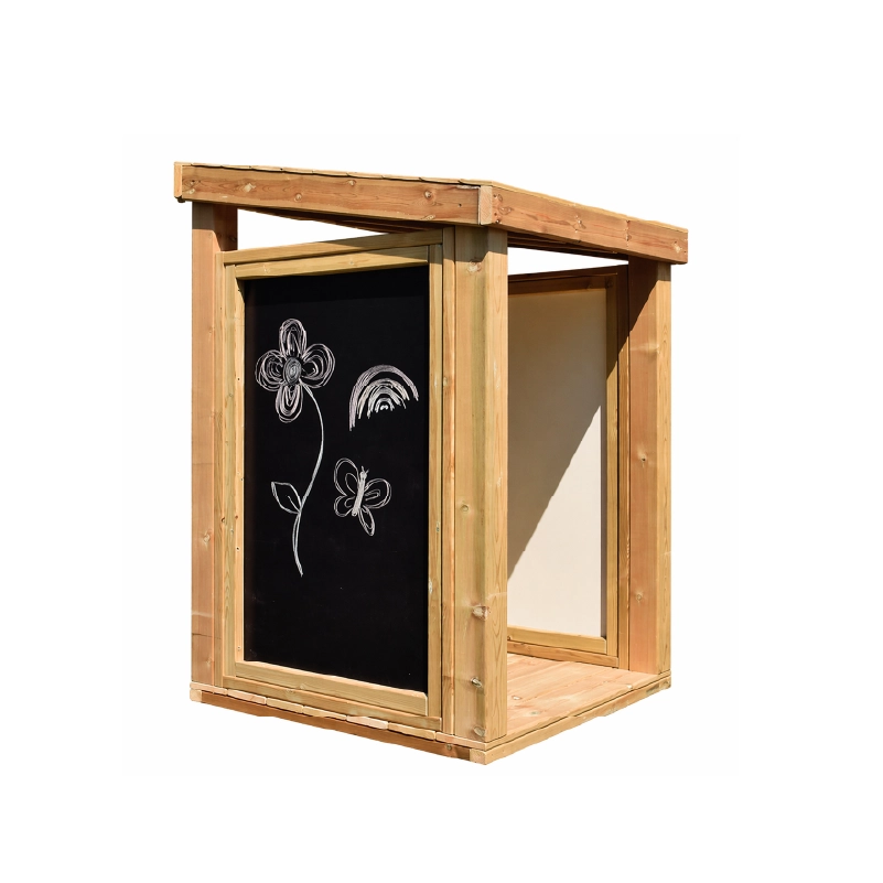 This type of outdoor playhouse offers more ways to play and features, such as added seating, blackboards, play panels, and other interactive elements, increasing the value of play and making it suitable for projects with limited space or those wanting to provide children with a greater play experience.